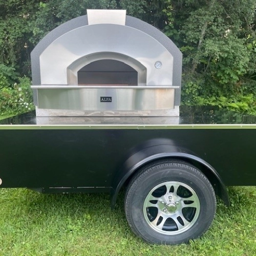 The Alpha Professiona Quick 6 PIZZE Mobile Pizza Oven Trailer comes as a lightweight, single-axle trailer with a mounted stainless steel wood fired pizza oven. Capable of baking six (6) 10″ pizzas at a time, this pizza oven trailer is ideal for caterers, party rental companies, tailgaters, restaurant patios, Special events, Golf Courses and so much more!!!