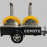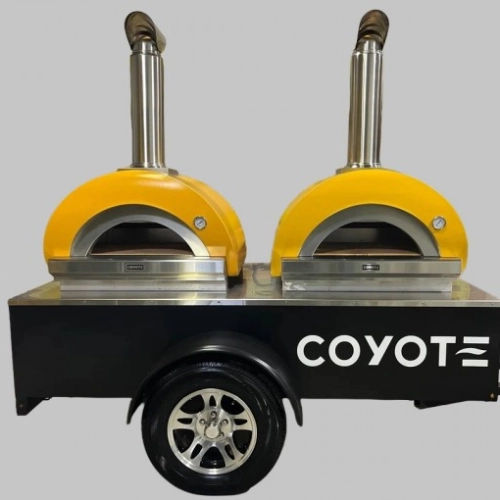 This mobile pizza oven trailer uses two COYOTE DUOMO 40 stainless steel pizza ovens. It has fast heat-up times and is capable of reaching (500°C) 1000°F+ degrees.