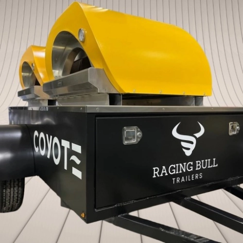 Our 4x8 Raging Bull Double-Headed Mobile Pizza Oven Trailer featuring the Coyote Duomo Woodfired ovens is a lightweight, single-axle trailer with a mounted stainless steel top.