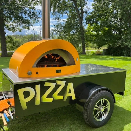 Our WOODSTONE OVENS ALFA ALLEGRO Mobile Pizza Oven Trailer is a lightweight, single-axle trailer with a mounted stainless steel wood-fired pizza oven. Capable of baking five (5) 10″ pizzas at a time, this pizza oven trailer is ideal for caterers, golf courses, restaurant patios, party rental companies, and tailgaters.